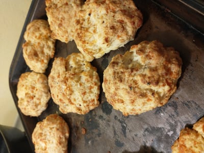 A nice savory scone, I can't stop eating them fresh out of the oven.. when I bring them to work only half will make it. They also make for an awesome scone sandwich base, have tried mixing in pickle chunks to and have been delighted with the results