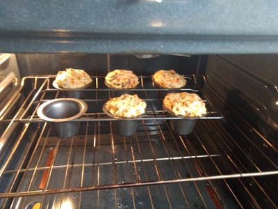Preheat the oven to 450°F. Spray a 6 count jumbo muffin tin with non stick spray or line with silicone liners.